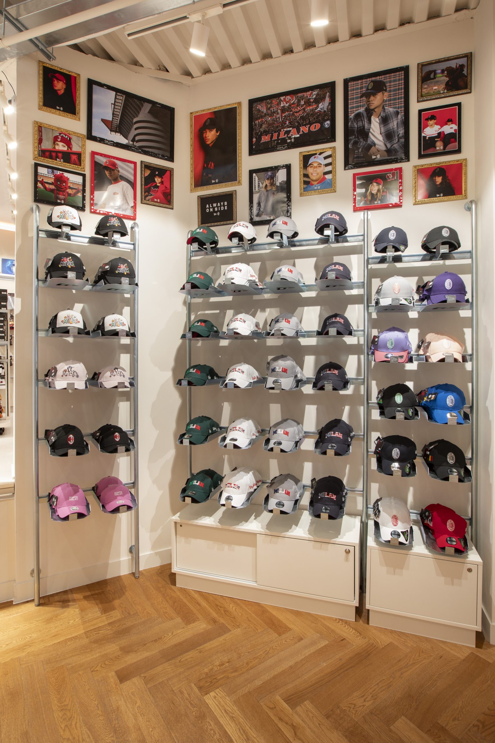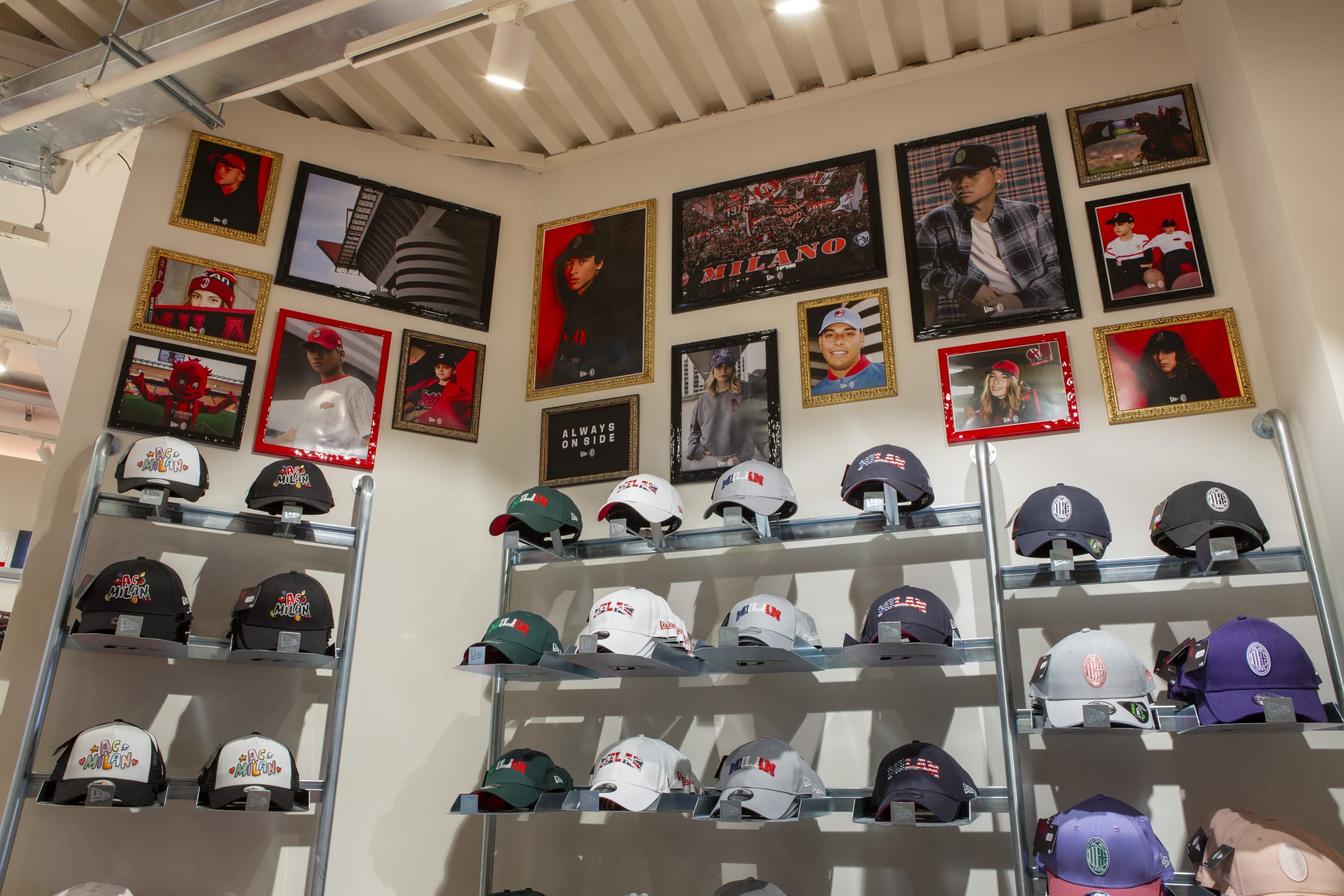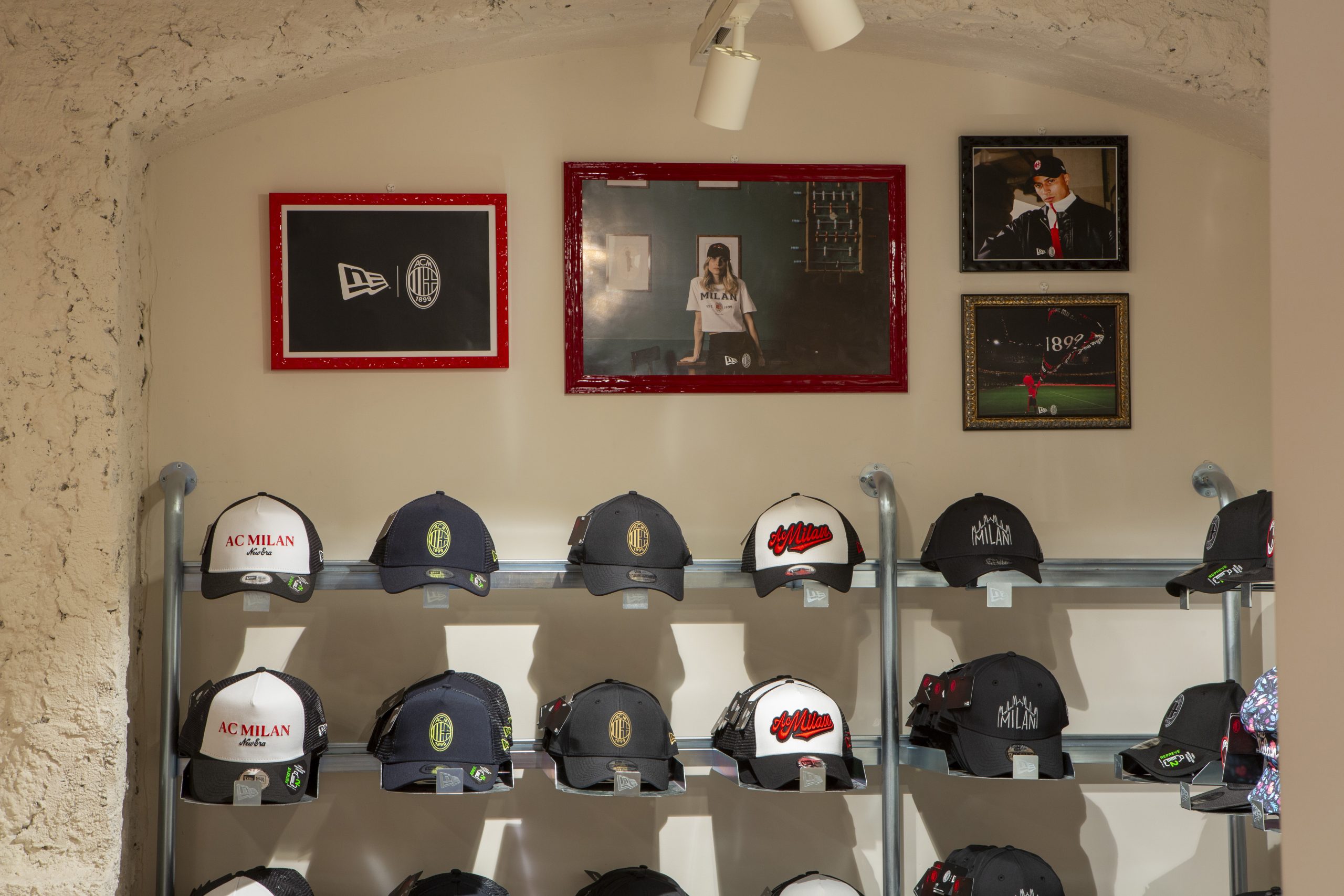 NEW ERA X MILANSTORE NEW ERA X NUOVO MILANSTORE Realizzazione di branded wall dedicati al marchio “NEW ERA” all’interno del nuovo Milan Store. Il progetto prevede: produzioni di strutture espositive a parete box storage cornici per brand image trasporto e montaggio