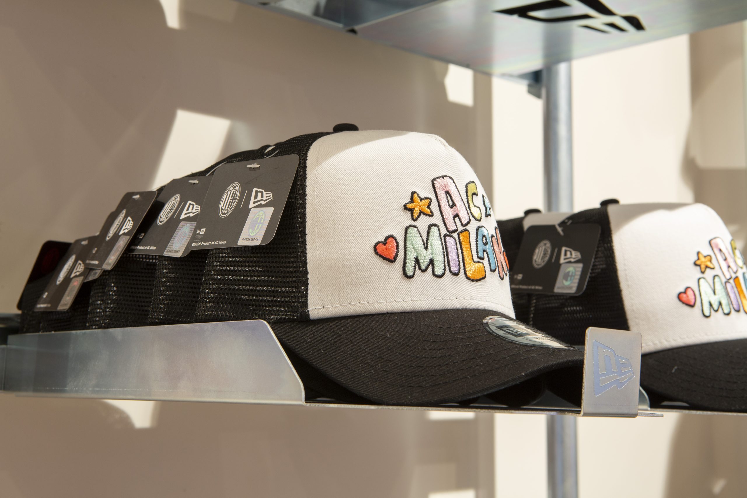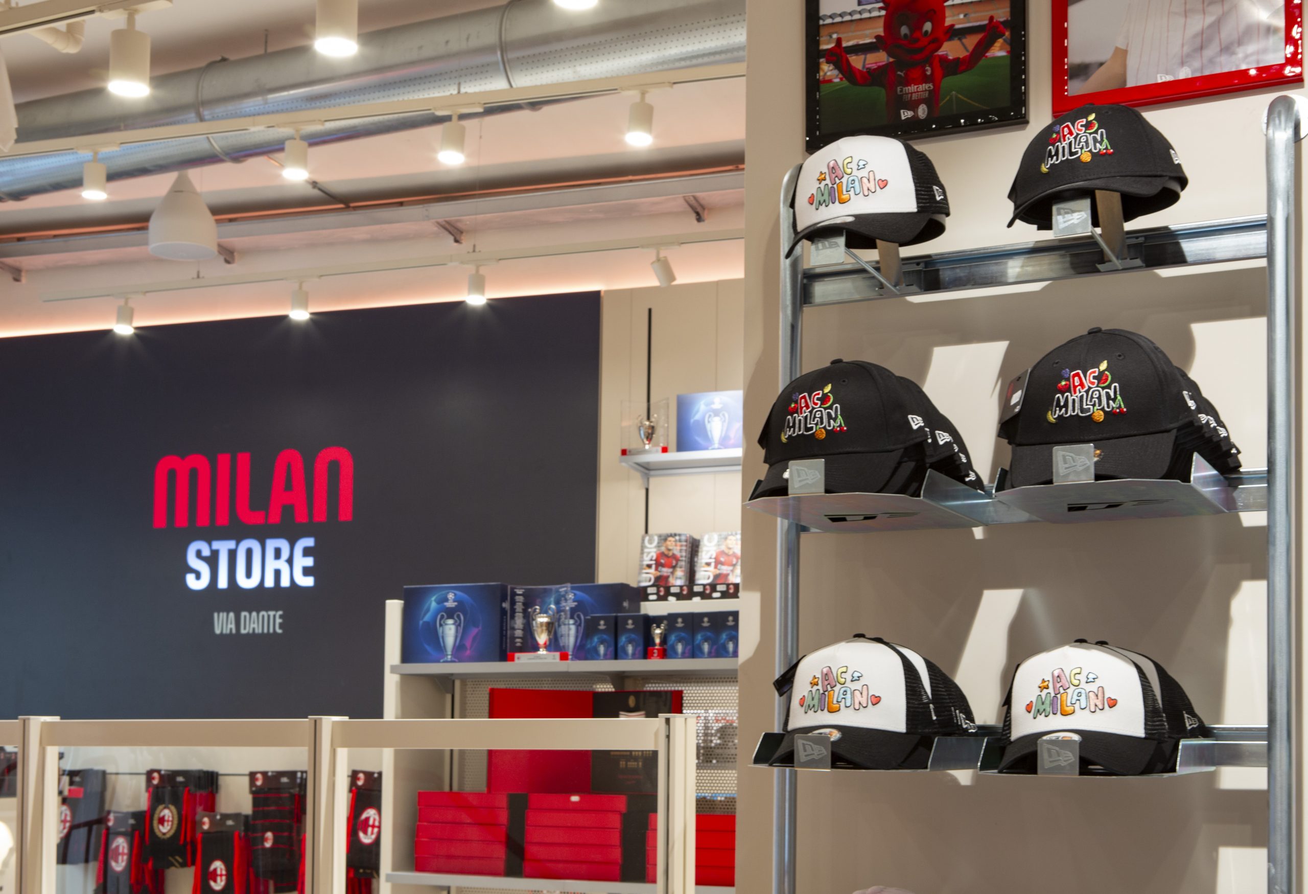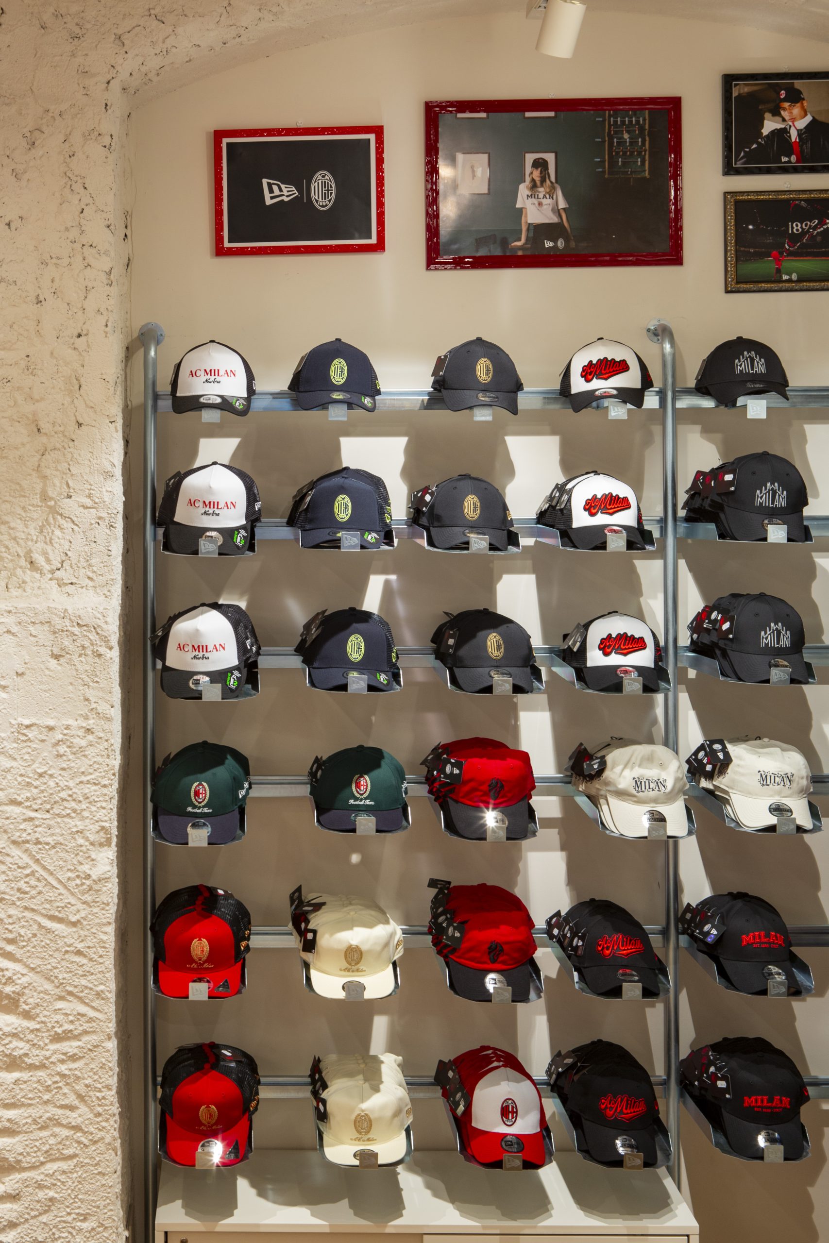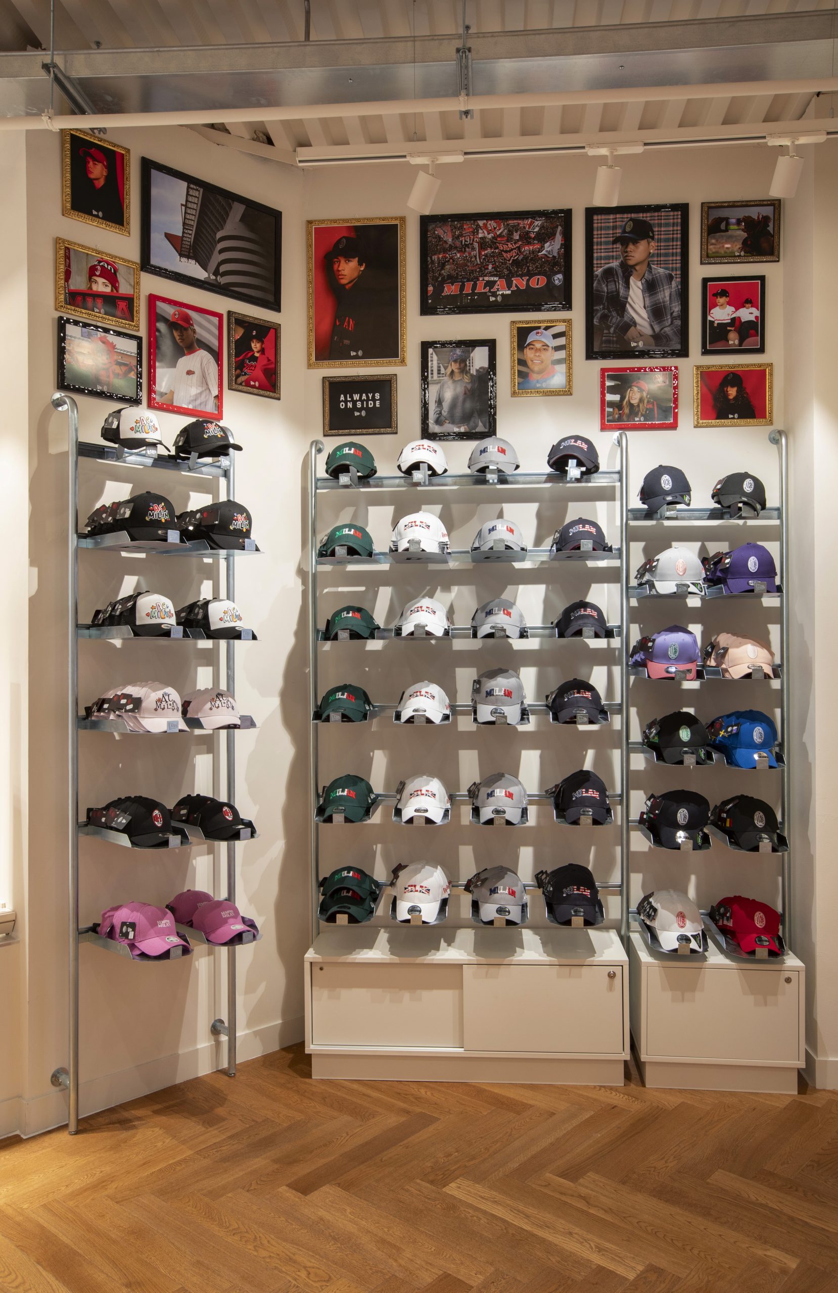 NEW ERA X MILANSTORE NEW ERA X NUOVO MILANSTORE Realizzazione di branded wall dedicati al marchio “NEW ERA” all’interno del nuovo Milan Store. Il progetto prevede: produzioni di strutture espositive a parete box storage cornici per brand image trasporto e montaggio