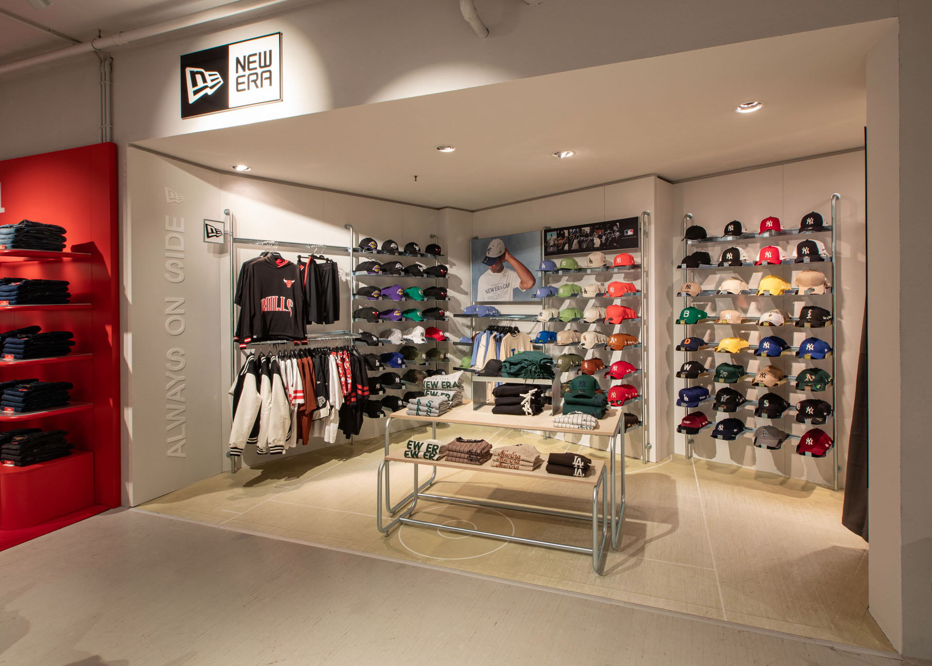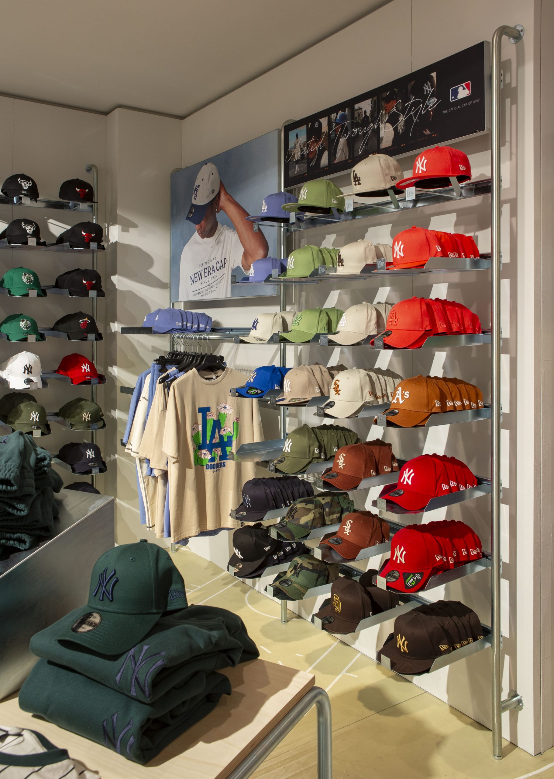 Questo progetto ha coinvolto la realizzazione e l’allestimento di uno spazio dedicato al brand New Era all’interno della Rinascente Annex. L’esposizione è caratterizzata da un layout pulito e organizzato che mette in evidenza la vasta gamma di cappelli e abbigliamento streetwear, con particolare attenzione ai dettagli visivi e alla facilità di accesso per i clienti.