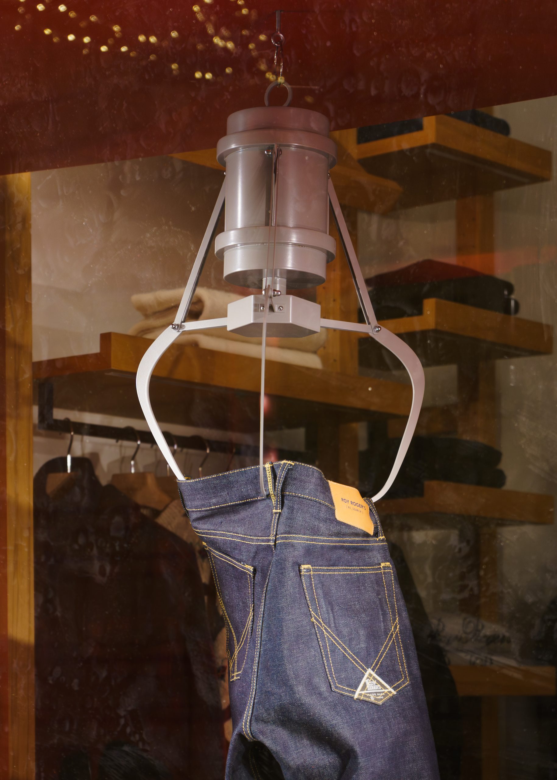 - Esposizione originale: I jeans Roy Rogers sono al centro della scena, presentati in modo creativo attraverso una “macchina artiglio” che richiama i classici giochi delle fiere.